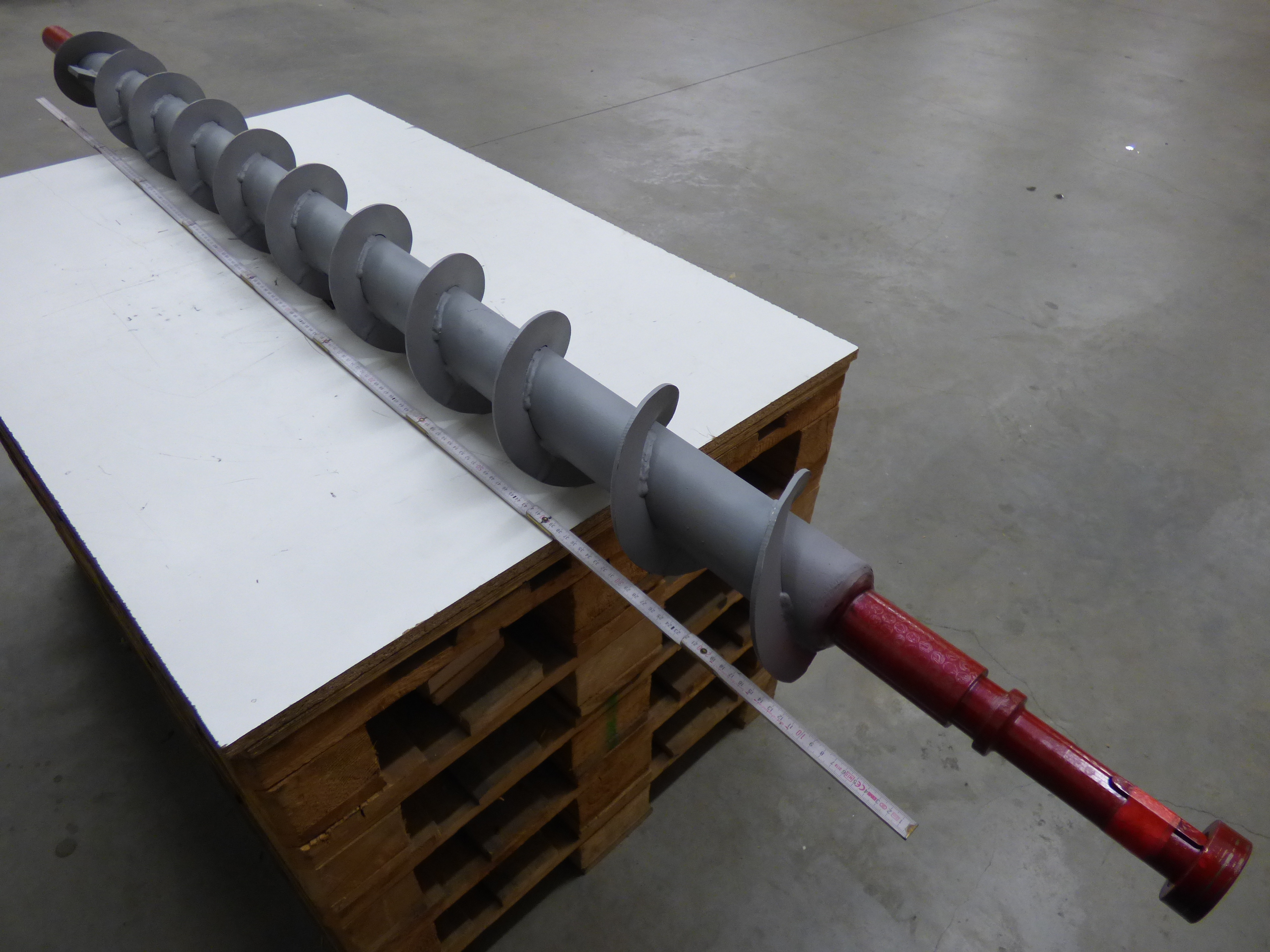 SHAFT COMPOSED OF : - SPIRALHOLDING PIPE ST. 52.0 D=76,1 THICK= 10 MM - SHAFT END ROUND BAR PIN C40 - SPIRAL IN SHEET FE THICKNESS 5 MM