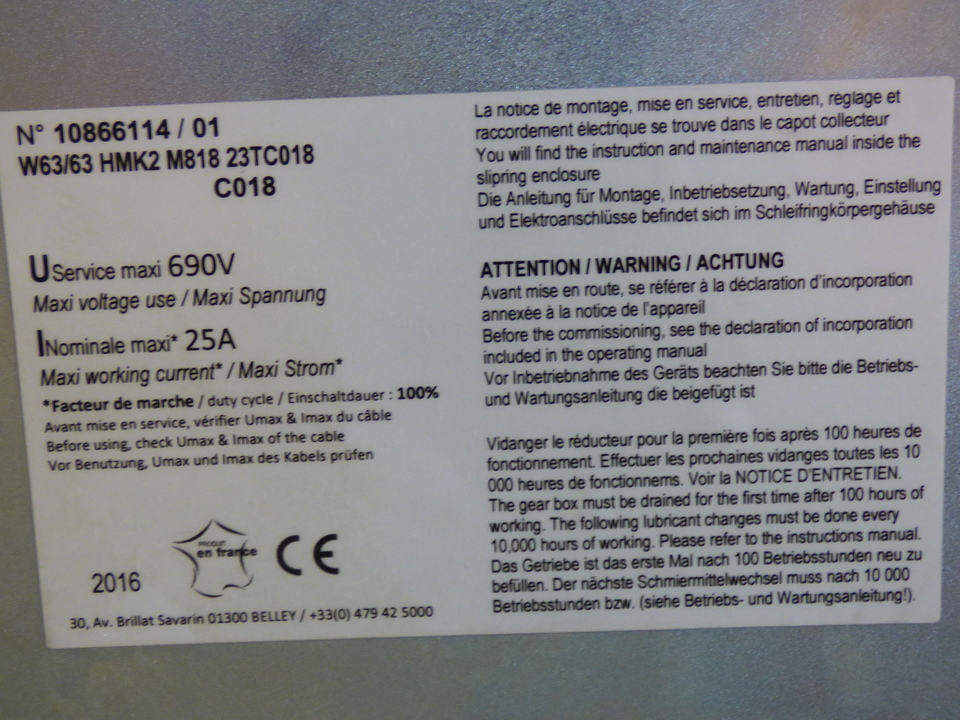 Wampfler Kabelverleger ES616-W80.3/63/10-18-HMK2/KN 71G4--- fuer 55-Meter-langes Kabel NSHTOeU-J 24x1.5 mm2 Assendurchmesser 27 mm Gewicht 1.02 kg/m Geschwindigkeit 30 m/min Active travel 55m mounting height 3 m dimensional drawing MZ6c-6114/C wiring diagram 71-S210-0049
