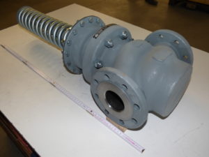 Regelventile DR 7641 - DN65 PN40 RTK Überströmventil Type UV 4.1, Funktion: Ventil öffnet bei steigendem Vordruck, Nennweite DN 65, Nenndruck PN 40/10, Gehäuse aus Stahlguss EN-GP-240-GH (GS-C25) Flansche mit Dichtfläche nach DIN EN 1092-1/21 B1/PN40, Kvs = 32 m3/h, Einsitz entlastet - weichdichtend, Kegel, Spindel und Sitz aus Edelstahl, Stahl-Antrieb Sollwertbereich 0,8 ... 2,5 barü mit Membrane aus EPDM + PTFE ,Steueranschluss : EO8 (Steuerleitung bauseits), Anmerkung: (1) Max. zulässiger Vordruck: 3,75 barü (2) Baulänge = 290 mm (3) Wir empfehlen die Rohrleitung hinter dem Ventil auf DN100 zu erweitern