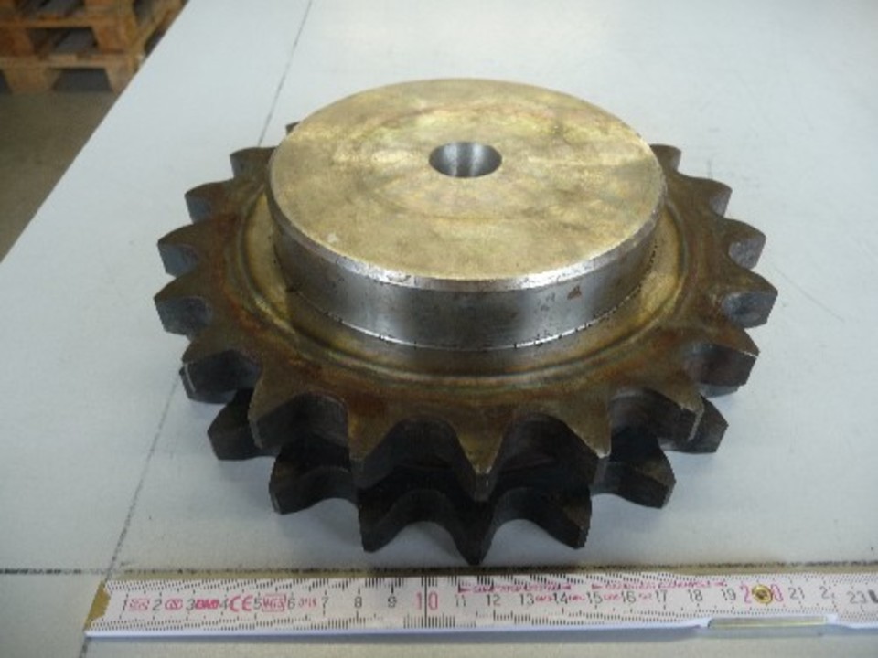 Оригинальное: Kettenrad 2-fach geh. Zähne 20B-2 (1 1/4x3/4) Z 21 vorgebohrt, gehärtete Zähne