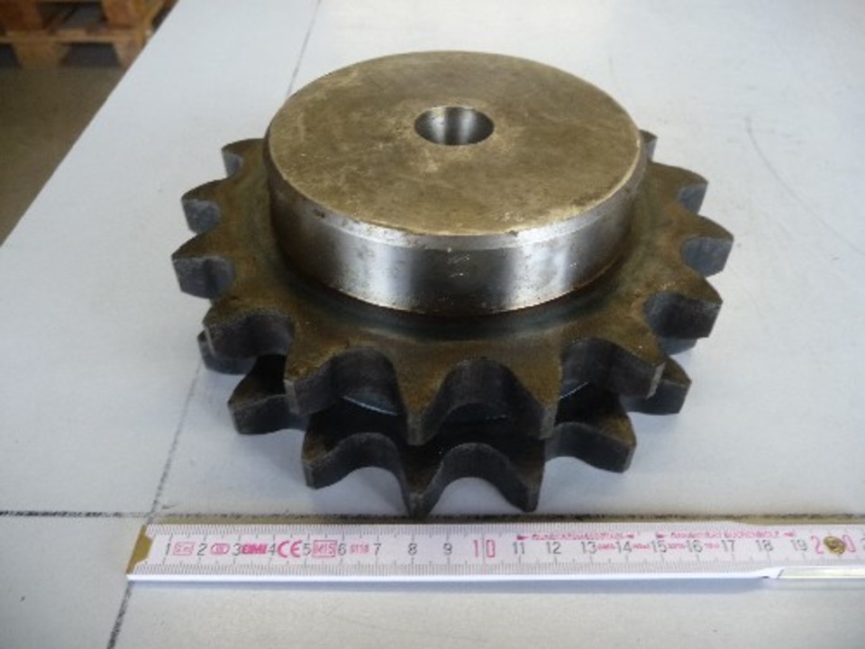 Оригинальное: Kettenrad 2-fach geh. Zähne 20B-2 (1 1/4x3/4) Z 17 vorgebohrt, gehärtete Zähne